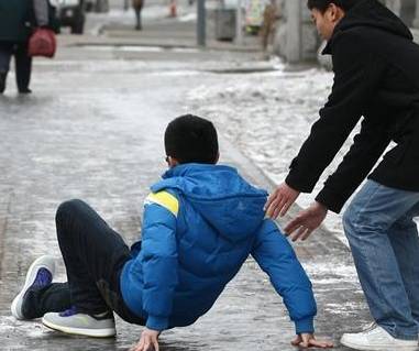 当你觉得身体失去平衡时,应迅速扔掉手中的物品,双手环抱在胸前,防止下意识地用手撑地而造成骨折,同时臀部着地,向左侧或右侧摔倒。也可以双手抱头,用打滚的方式化解冲击力,这样既能不会伤到手关节,又能够很好的保护身体关键部位头部。