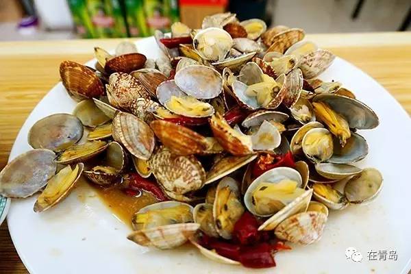 辣炒蛤蜊,选用咸度不高的红岛蛤蜊,味道很鲜美,配上老板自己炒的红辣椒,满满一大盘又辣又鲜。