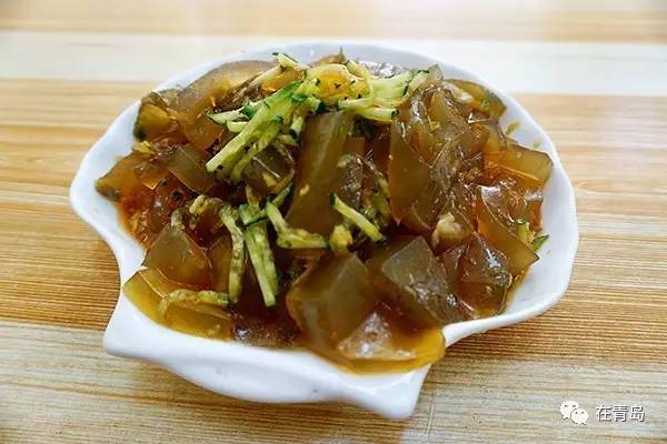 青岛特色凉粉口感清凉酸爽,切上黄瓜丝拍上蒜泥浇上香醋,入口即化,夏天吃会更有一番滋味。