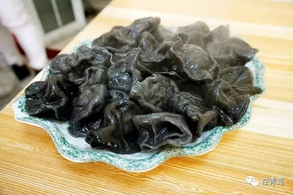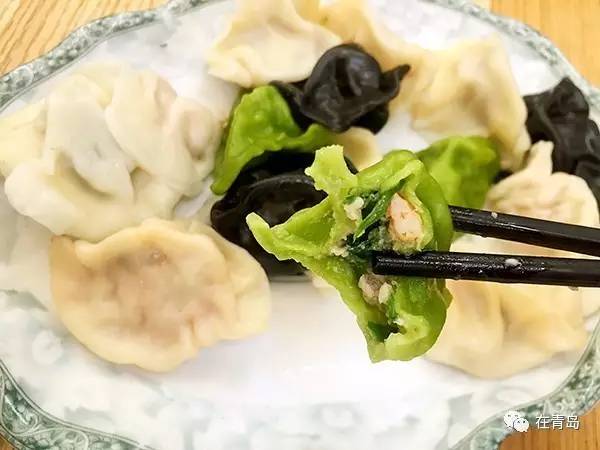 还有墨鱼饺子的饺子皮,加了墨鱼斗的汁,钙铁含量很高,营养价值丰富。