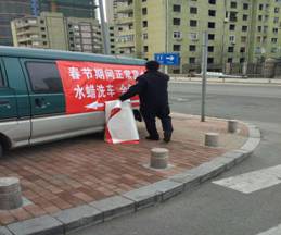 店家辩解称:认为违法停车系交警部门管辖,张贴在车身广告应该无碍并且躲避综合行政执法大队的管理。但执法队员从宣传教育入手,告知当事人私自张贴广告已经违反了《青岛市城市市容和环境卫生管理办法》之规定,且店家违法停车未经审批张贴车身广告,已经属于违法行为。店主在执法队员的严明劝告下也认识到自己的错误行为,市南区综合行政执法大队云南路街道中队执法队员当即将将广告布卸下,并且责令当事人到中队进一步处理,整洁的路口恢复应有的整洁秩序,在此提醒广大业户切莫有侥幸心理,自觉遵守法律法规,共保辖区整洁环境。