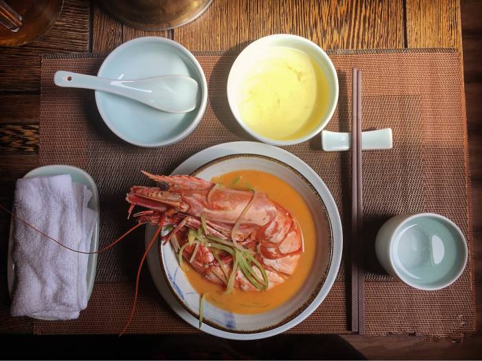 央视推荐的冰点腌螺,砺虾必点,这里的砺虾超级大只,肉厚肥嫩,配白灼汁最佳!手打鲅鱼丸汤和海胆蒸蛋,味道超好,蛋味的浓郁与海胆的鲜美结合在一起,配上佐料,已然加入饭爷私人俏胶东“豪华套餐”系列。