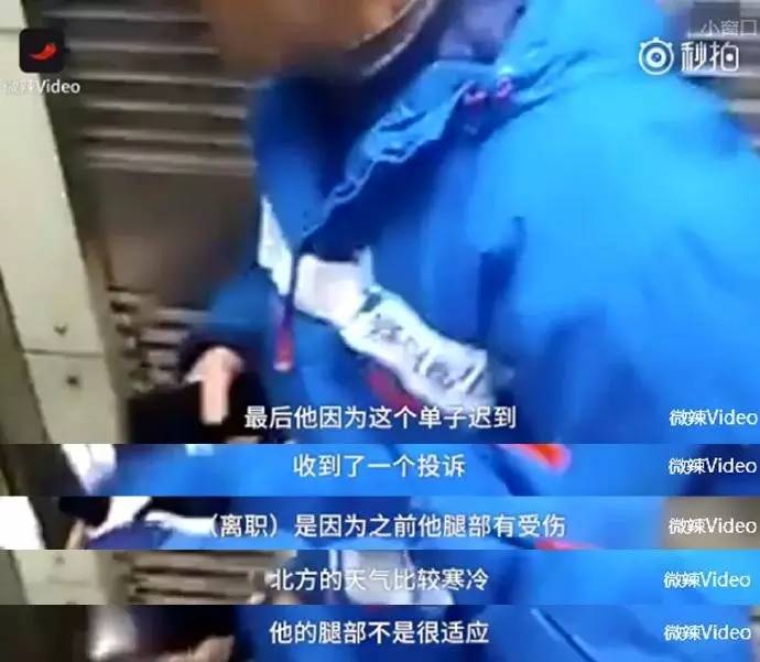 @大喵君--:遇到过一个40-50岁的送餐员,为了不耽误时间,气喘吁吁满头汗的爬上楼。真的觉得挺辛苦的。视频看的很心酸。工资不多,迟到一次扣的还很多。