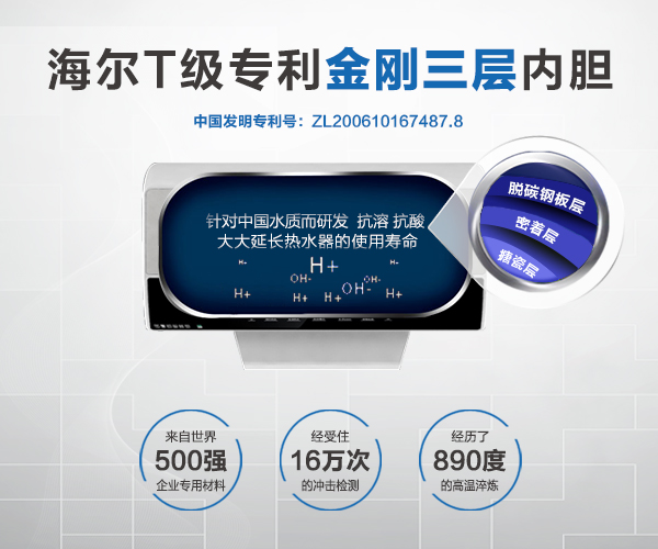 海尔T级专利金刚三层内胆,有效延长使用寿命