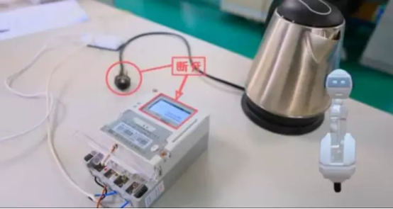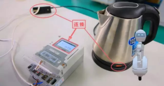 把电水壶接在智能电表上,这就像是我们家里的出线。
