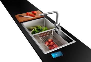 比如欧琳发布的新款净水水槽,相比初代产品的面世已经过去一年半的时间。2015年9月,欧琳发布首款净水水槽产品,将水槽与净水器结合,采用反渗透技术,定位高端家庭市场。如今的净水水槽一方面升级了滤芯,另一方面在智能模块上完全实现了智能化、可视化操作,将水槽带入智能时代。