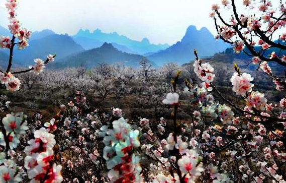 春风和煦,花树绽放,沿着优美的石老人海岸线直到蓝色仙境东麦窑满眼的盎然春意。