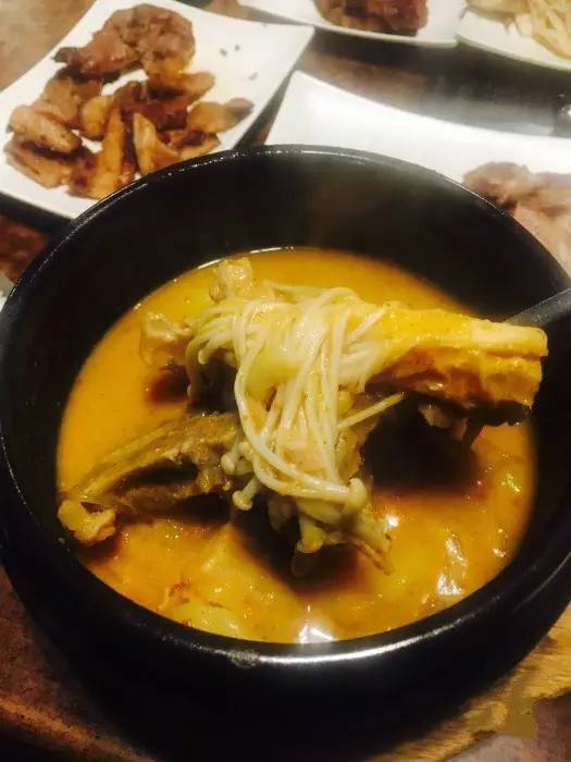 土豆汤性价比高的惊人,满满的一石锅,土豆很软糯,里面竟然有两块大排骨!20元还附赠超美味土豆泥小菜也是拼了价格特别公道,量大实在!