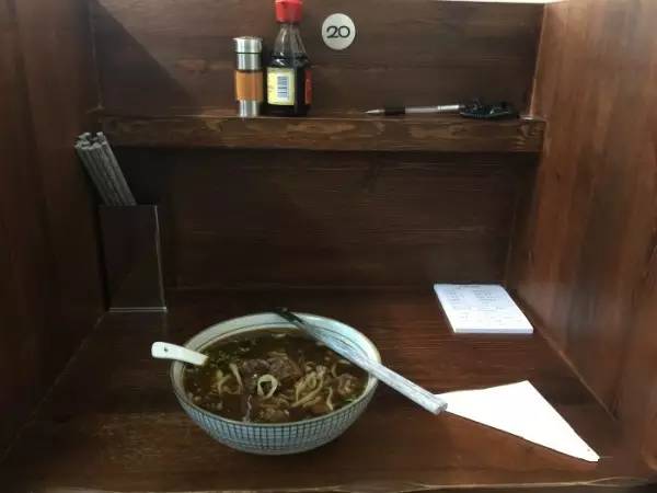 虽然外面有小桌子,但是一定要进到里面去吃!进到里面吃!进到里面吃!重要的事说三遍!里面是小格子桌。装修风格是日式的,是老板去日本的时候get到的灵感~每个人的独立空间,杜绝不雅吃相!放纵享受拉面!