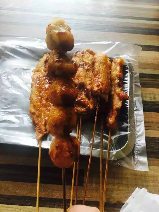 价格非常的适中。素鸡1.5两串简直非常的良心价了。是裹面炸的,老青岛口味。可惜小编第一次去选的酱料口味不对,看着别桌的辣酱看起来很过瘾。这次选的果酱和甜面酱,感觉一般。小编下次就去尝尝辣酱!