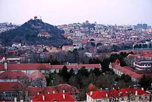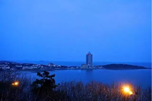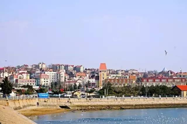 远眺浮山和高楼洋房,近侧有碧海蓝天,相得益彰。