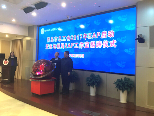 3月16日,青岛市总工会2017年EAP启动暨市地税局EAP工作室揭牌仪式在青岛市地税局举行。市总工会主席于睿、副主席梁海泉、市地税局郑卫星局长、沈宏副局长;各区市总工会负责人;部分市直企事业单位工会主席;地税系统各单位负责人;以及新闻媒体的代表参加了启动仪式。