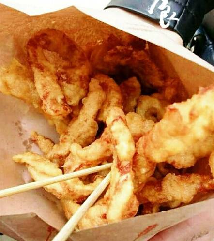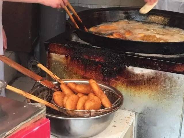 位于团岛早市里面,进了早市往右边转,一直往里走。他家炸糕分两种馅料,一个是糖,一个是豆沙馅的。1块5毛钱两个,大家也基本上都买白糖的。熱呼时吃面软软的,馅往外流,外面那层皮还酥酥的。豆沙的是长条的,比较像枣泥,也依然很酥脆甜糯。
