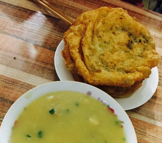 青岛港上有名的早餐,听说每天都要排很长的队,风雨无阻!馅饼有萝卜跟肉馅两种、肉馅比较有味道,提前腌过的,萝卜就比较清淡一些~甜沫很浓厚,这点给赞。里面有花生仁,豆腐干,肉,还有菜叶子,配着馅饼,非常带劲。