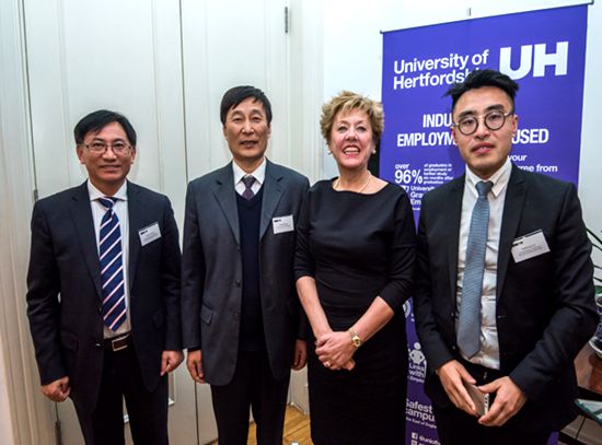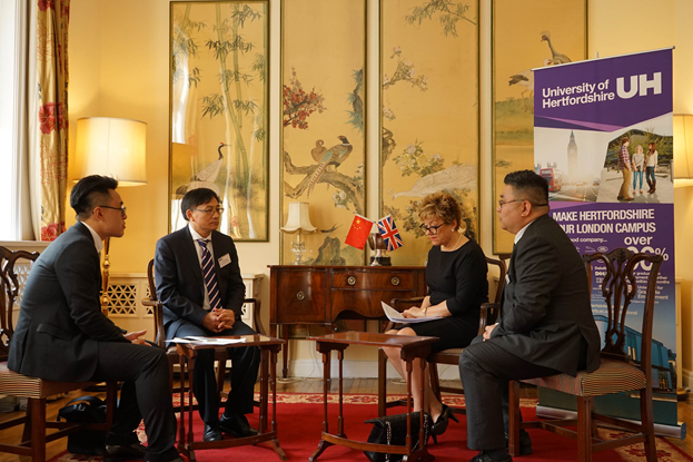 2017年3月17日,中国石油大学副校长王瑞和,教育发展中心主任王天虎以及教育发展中心英国留学服务中心主管崔岳峰一行受邀前往英国驻华大使馆参加英国赫特福德大学(University of Hertfordshire) 主办的’新经济形势下的创业精神与就业力’ 论坛,并与英国赫特福德大学校长Julie Newlan女士就国际合作进行了深入会谈。