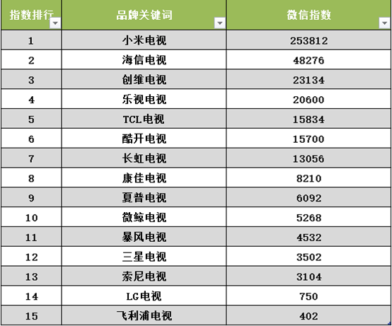 对于广大消费者而言,这个微信指数排名比较真实的反映了各电视品牌近期的受关注程度,对购买选择有一定参考意义。