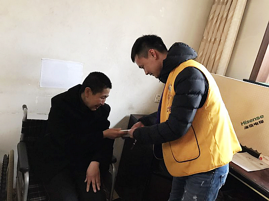 毕显庶老师对广大狮友的到来表示由衷的感谢,据毕老师介绍,妻儿患病后,自己的生活一直非常困难,一边要教书育人,一边还要照顾生活不能自理的妻儿。2014年青岛聚福服务队的狮友们了解了这个他家庭的情况后,每年都对他进行捐助9000元,今年已经是第三年了。有了这笔钱,他就能请一个陪护,在他上班的时候,帮助照顾无法自理生活的妻儿,自己的压力也轻松多了,实实在在的改善了自己的生活。