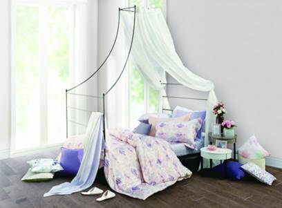 卧室适合换上水彩画般的印象花卉床组,彷佛被花朵轻捧在浪漫花丛间;随季节性更换的毛巾、地垫更是适合作为妆点居家的小单品,浴室里的毛巾换上渐层条纹图腾,浴室门口轻踩着晕染紫花图腾的HOLA孚日抗菌记忆踏垫,清新无负担的自在。