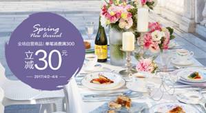 1、 3/31-4/4惠满春光,纳新时节,全场自营商品单笔消费满300元立减30元