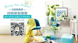 3、3/23-4/6参与#为家换春装#行动,即可领取50元“家居改造基金”及神秘赠品