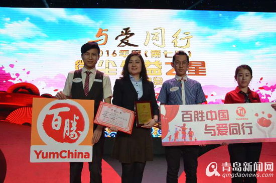 青岛新闻网讯 我们本是平凡微小的“尘土”,因为爱,却塑造出伟大。在3月31日召开的第七届“微尘公益之星”公益晚会上,百胜中国控股有限公司青岛市场凭借“捐一元”、“曙光基金”等公益项目成为会场上的耀眼明星,不但入选为2016年度青岛微尘公益之星企业,还作为年度公益企业代表,向与会的市委领导、企业代表、公益组织和个人等,分享了百胜中国的公益大事件,受到与会代表们的关注与赞扬。
