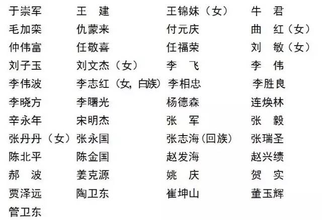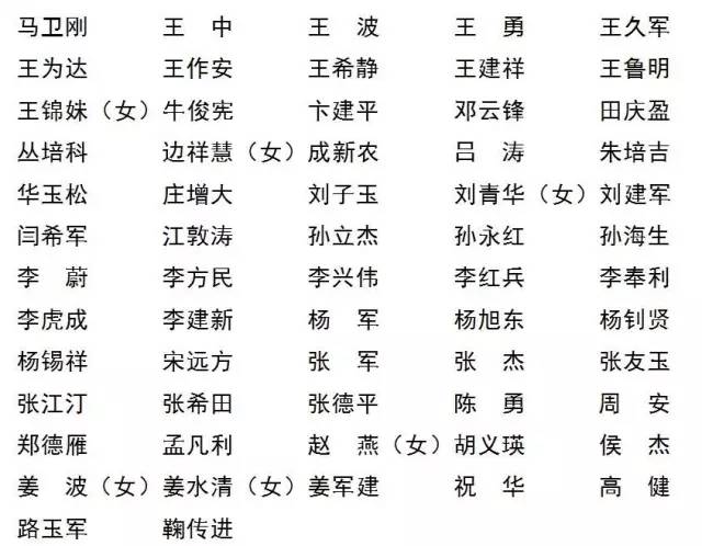 张江汀、孟凡利、牛俊宪、王鲁明、王建祥、边祥慧(女) 、刘子玉、祝华、孙立杰、田庆盈、王久军、邓云锋