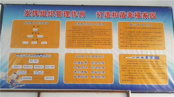 平陆县在社区设立了反邪教办公室,固本强基,建立基层防范邪教的长效机制。在社区的黑板报上写着反邪标语,并且通过漫画的形式制作了反邪教警示教育宣传墙。平陆县防范办的工作人员联合社区人员共同在社区向群众发放反邪教书籍和宣传资料1000余份。防范办工作人员向群众耐心讲解了邪教的种类、邪教的危害以及防范抵制邪教方法等有关知识,将反邪教警示教育宣传推向了高潮。使群众更深刻地认清邪教的丑恶嘴脸。同时,群众纷纷表示相信科学,反对邪教,提高素质,促进和谐。