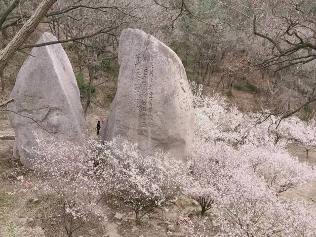奇石之下坐拥一篇樱花林,无论自上而下俯瞰,又或是穿梭于这片林子之中,洁白如雪的樱花树360°无死角簇拥着自己的视线。