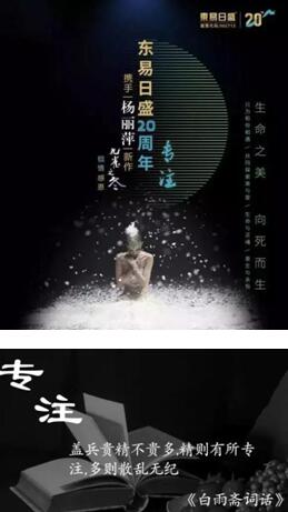 巴菲特曾经说过,人的一生最重要的就是专注。杨丽萍用他对舞蹈的专注,成就了孔雀之冬在舞台上的绚丽。东易日盛用对家装的专注,成就了一个又一个家庭的梦想与20年的品牌辉煌。