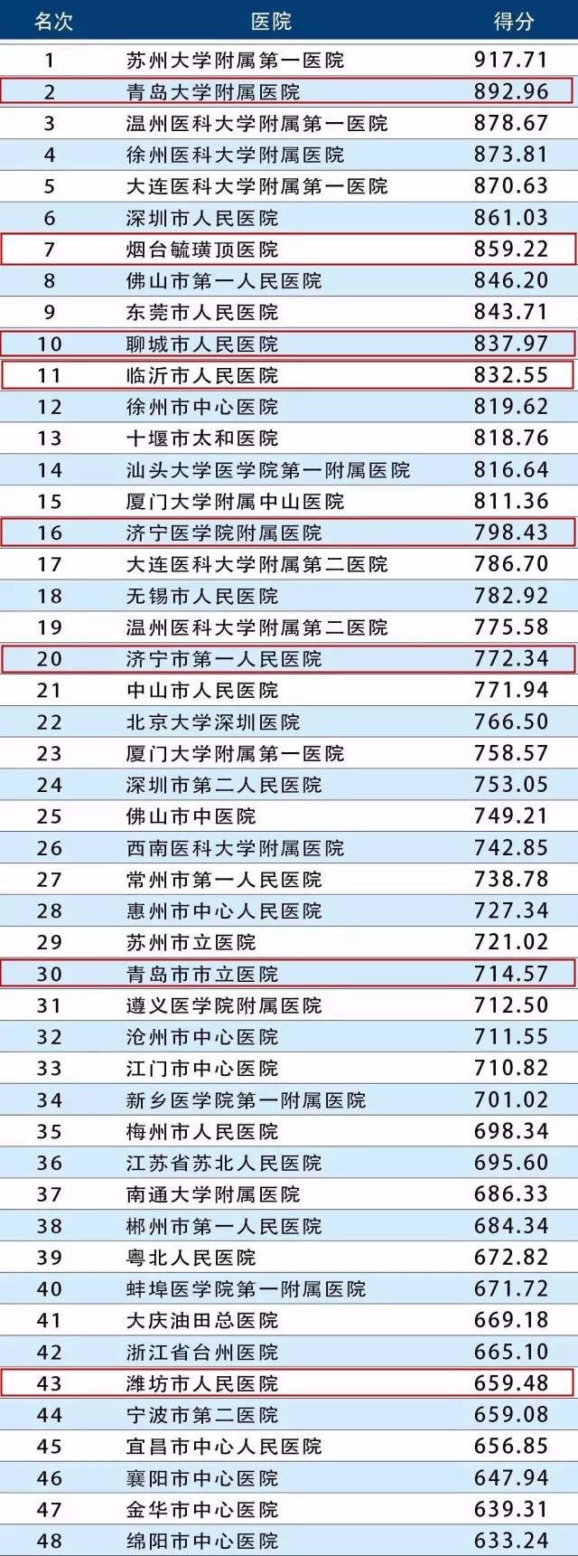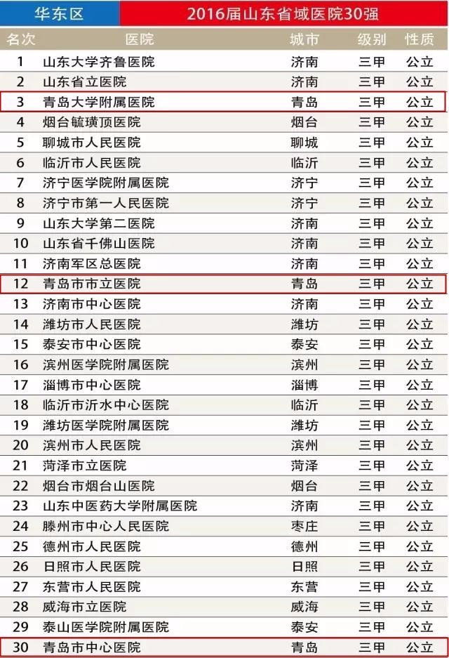 在山东省医院前30名排行榜中,