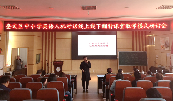 据了解,本次教研活动是由潍坊市奎文区教育局组织,全区中小学公立学校参加的研讨会。当天参会人员包括奎文区教育局教研室英语教研员及全区34所全日制中小学英语骨干教师等200人。来自北京的巧口英语,作为英语翻转课堂教学的引领者,受到潍坊市奎文区教育局的邀请,与参会人员分享了关于英语翻转课堂教学的先进经验。