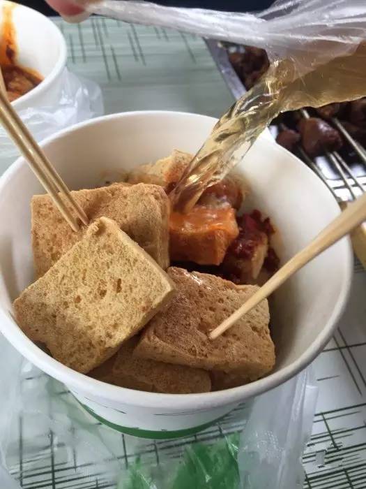 西镇臭豆腐店面虽小,但就是每天去的人络绎不绝,这家店的用料很新鲜,炸到金黄色出锅,再淋上酸酸辣辣的汤汁,酸中还带着微微的甜,有别于传统的臭豆腐,基本闻不到什么臭味,只有拿到手之后能闻到微微的发酵“臭”味。