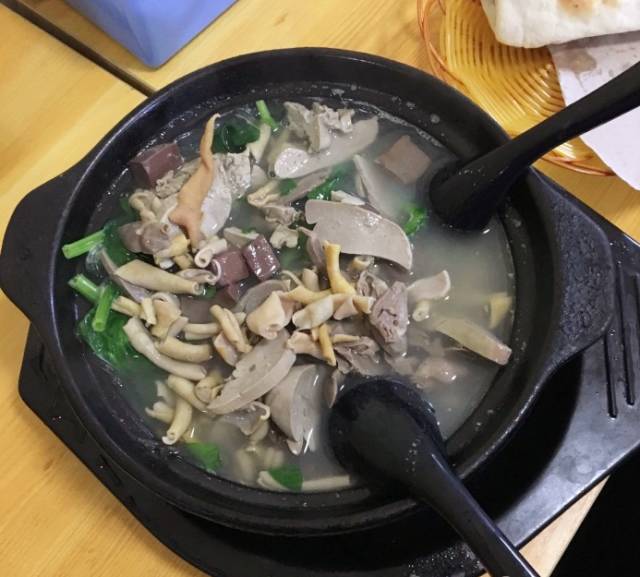 赵家牛肉砂锅和大君手擀面相隔一条街。牛肉砂锅可是西镇绝对的老字号了,牛杂砂锅里面可是大有文章:牛肉、牛舌、牛筋、牛肚、豆腐、白菜、蘑菇,应有尽有。还有三只鹌鹑蛋,这可是我的最爱。