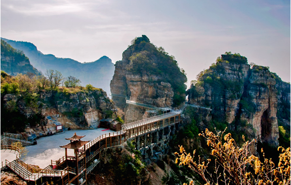 一是游览步道高度设计合理,坡度爬升较缓,阶梯宽度舒适,慢慢行走相当惬意,从苦游变成乐游;二是景区内休息点很多,随时可以调整自己的游览节奏;三是景区内两条悬空玻璃栈道,从景观效果和惊险刺激上都属国内第一,惊险刺激感会让人忘却疲劳;四是海拔1600米和1900米分别设有飞狐餐厅和双雄餐厅、双雄石小吃城。走累了,喝杯云端咖啡,品尝陕西特色美食、涞源当地小吃,清凉的风穿堂而过,还有WIFI刷刷手机,实在是惬意。