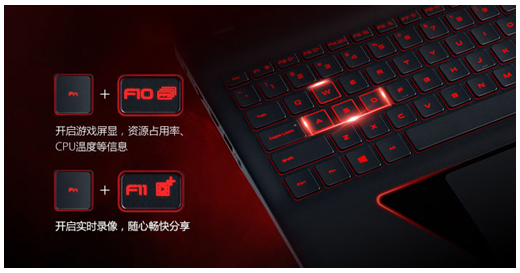 五一这种小长假是最容易沉浸在游戏中的,常常等玩家发觉时夜幕已经降临。长时间的游戏不但考验游戏本的性能,还考验着舒适度。三星玄龙骑士游戏本根据人体学设计的红色背光键盘,手感舒适、按键宽松,让手指可以随心应战。同时它还特别人性化的设计了快捷键,Fn+F10可以开启游戏屏显,可让玩家随时了解资源占用率、CPU温度等信息;Fn+F11则可以开启实时录像,帮助玩家省去了打开录屏软件的步骤,可谓是快捷方便,轻轻松松嗨起来。