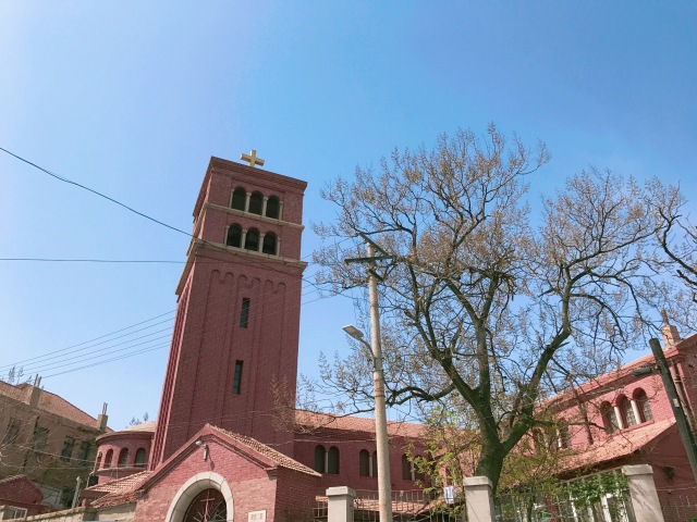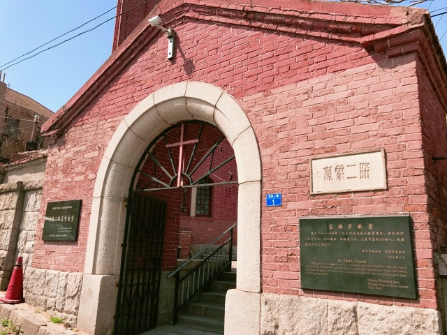 一座漂亮的红楼坐落在观象二路1号,青岛三大教堂之一的圣保罗教堂名气虽然没有那么大,做做礼拜、唱唱诗,清水红砖、朴实无华的罗马式建筑,气质不凡。