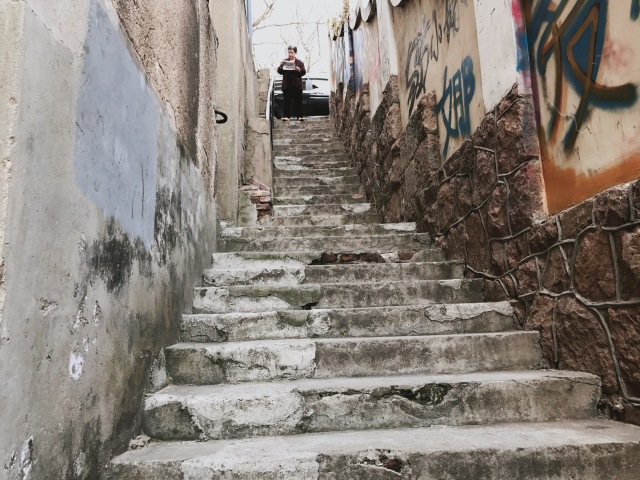 回眸处,斑驳的石阶也向我们展示着历史沧桑感。