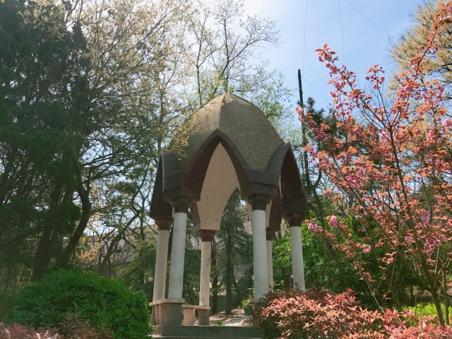 观象山上植被丰富,最适合春天去,花开成海,绿树葱葱,配上远处星星点点的红顶老建筑,瞬间进入一个画中的世界。