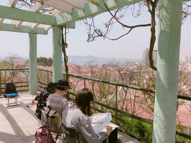 观象山上的另一片风景便是六中来山上采风的学生,他们画笔下的青岛总是那么美。
