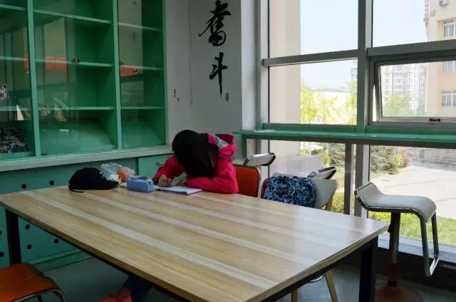 在二中,有周末也在学习的同学。头顶上的字真是最好的诠释。