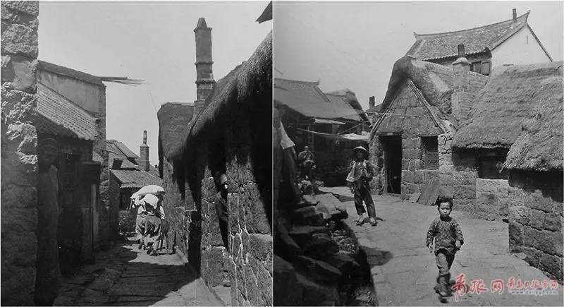 20世纪初,青岛沿海就地取材建造海草房,一小姑娘走在小路上。