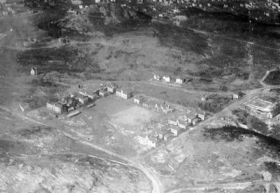 1928年,日本对中国从空中和陆地进行了全面的侦察。图为德国修建的军营,一战后日本占领青岛时改名为旭兵营。青岛主权回归后,军营旧址曾被用作胶澳中学校舍,1938年青岛再度被日军占领后,校舍又被改造成军营。