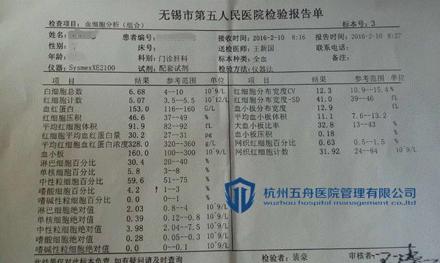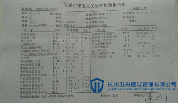 卢女士服药前血常规报告
