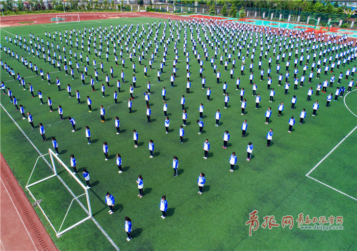 当天,除了高三应届生之外,高一、高二全体同学都参与了平板支撑。近千名同学分成五组进行,每组挑战坚持30秒以上。