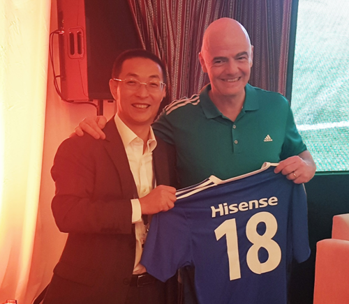2017年5月10日,借巴林国际足联大会,国际足联主席詹尼•因凡蒂诺接见海信特别代表、海信迪拜分公司总经理孙家印并表示:特别希望海信发挥显示技术的优势,让2018年俄罗斯世界杯的观众观看体验再上一级。