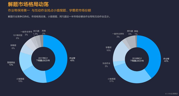 解题市场格局动荡:作业帮巩固榜首 小猿搜题缩水明显