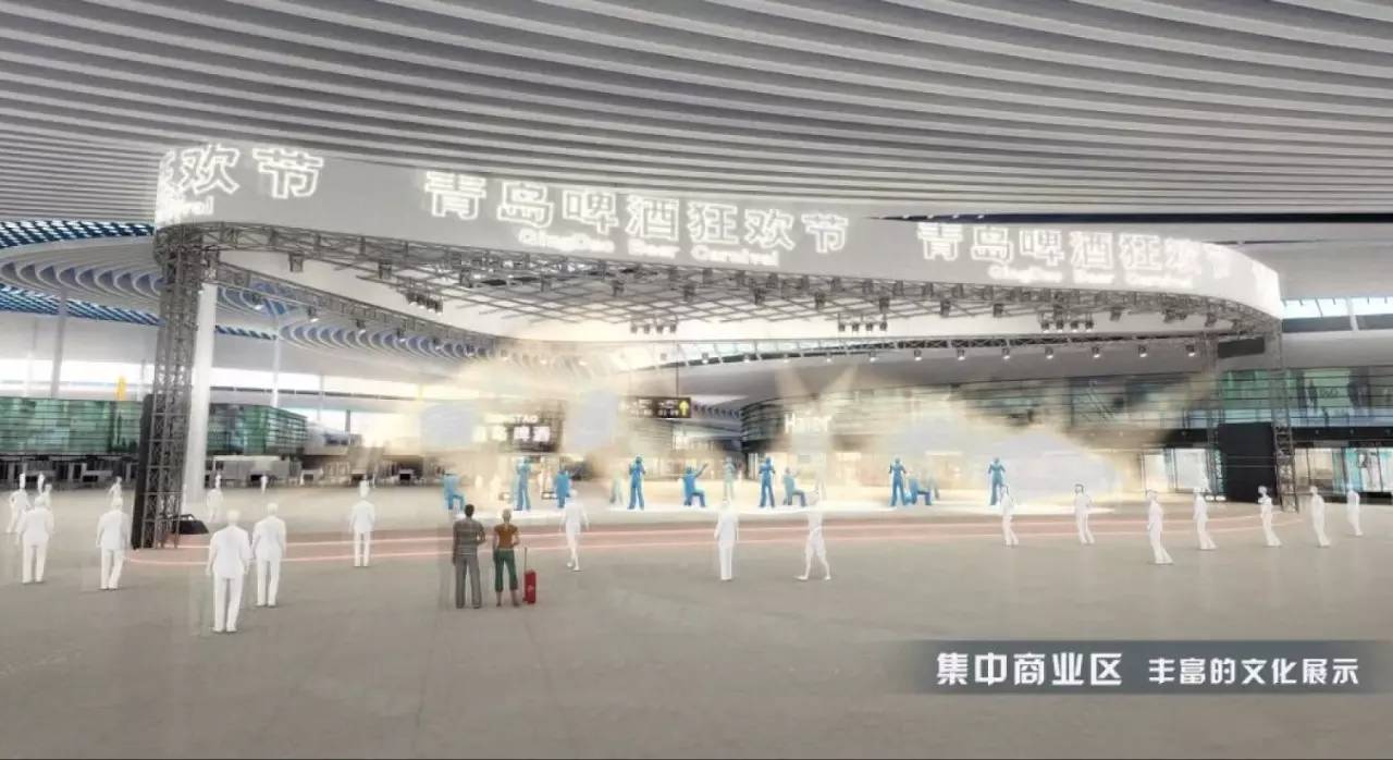 △ 在青岛胶州即将崛起的不仅仅是一座机场,而将是一座航空城。胶东国际机场内商业面积约3.5万㎡,距离最远登机口仅300米。商业类型涵盖多个消费层面及领域,在国际商业区还将设置国际品牌免税店。