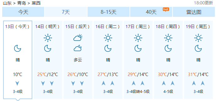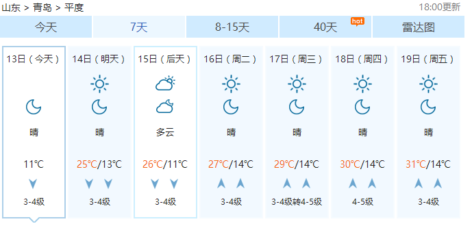 平度下周最高温度将达到31℃!