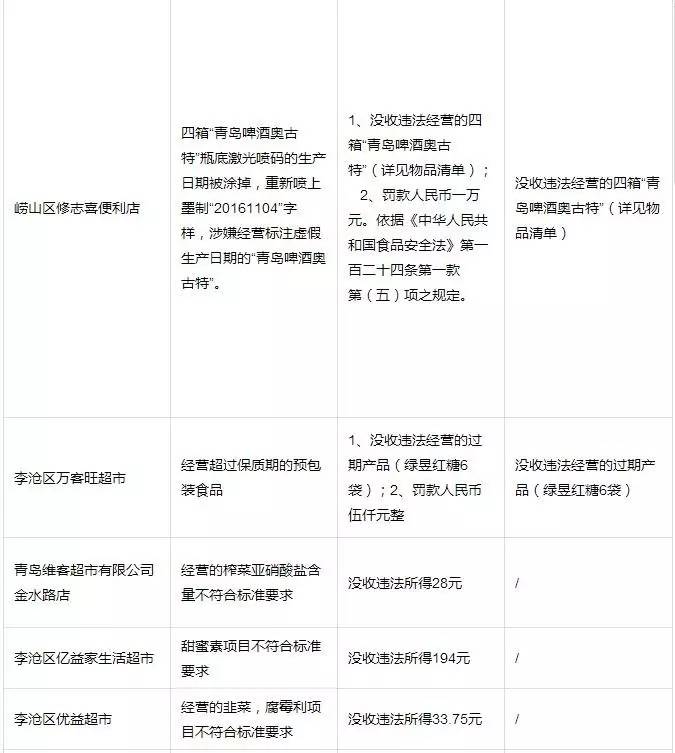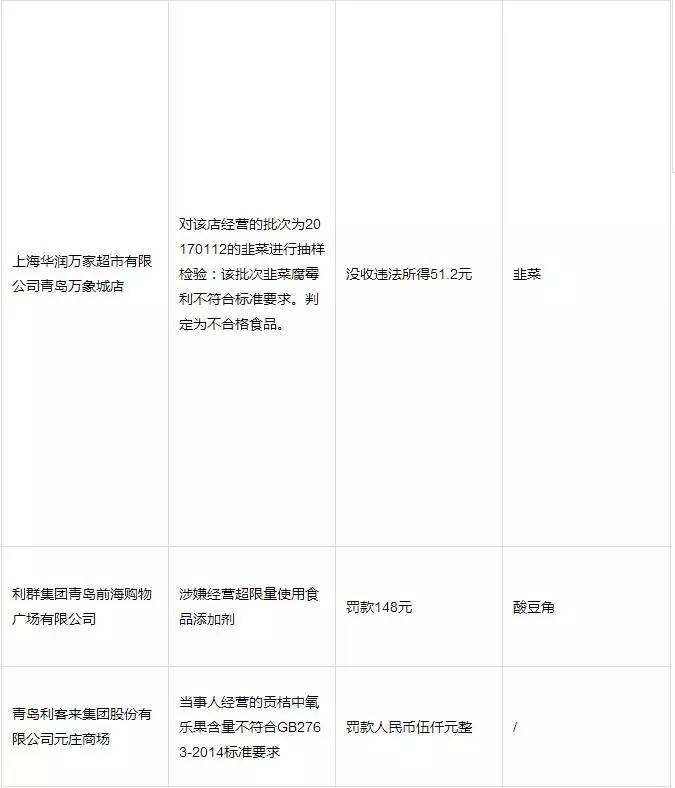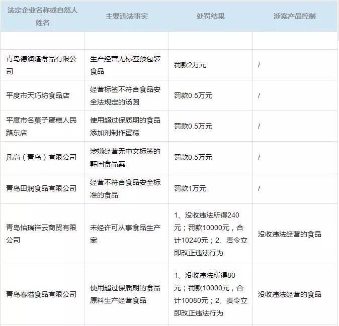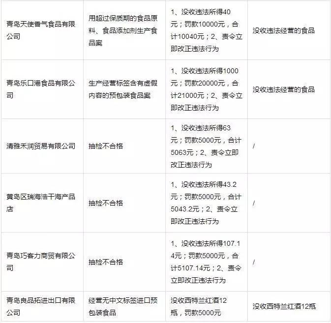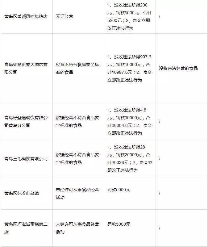 山东省食品药品监督管理局日前公布了全省17地市4月食品药品行政处罚信息。其中,青岛144家食品类企业或个人上“黑榜”,包括了以鱼水饺起家的船歌餐饮,还有多家知名超市因经营不合格食品被罚。部分上榜企业如下: