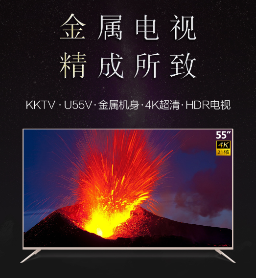 熟悉KKTV的消费者想必知道,踩着电商节庆大促节奏,“密谋”上架新品总是这个互联网电视品牌低调务实的风格。这次“AI电视节”同样如是。环保金属机身、金属窄边框辅以香槟金配色、1.19cm的超薄机身、抢眼的外观颇有担当客厅大将的风范。乍看之下,你会以为,这是KKTV今年推出的又一款高颜值电视。然而,U55V最令人惊艳的远非这些“表面功夫”。没错,有着非凡“内功”的U55V就是KKTV最新研发的力作,一款带有AI人工智能技术的新型电视。